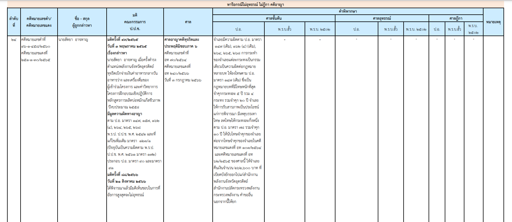 - ป.ป.ช.ชี้มูล อดีตพลังงานจังหวัดอุตรดิตถ์ ทุจริตเบิกจ่ายค่าอาหารโครงการอบรมสูงเกินจริง
