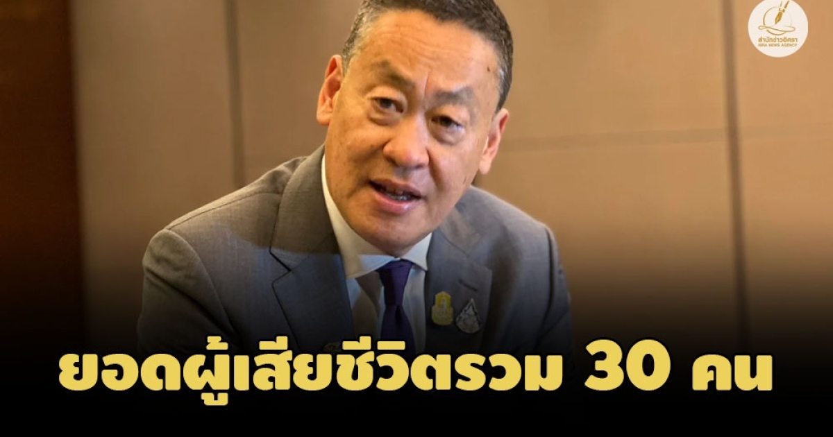 'เศรษฐา' นายกรัฐมนตรี เผยคนไทยเสียชีวิตเพิ่ม 1 ราย ยอดรวม 30 คน ส่วนผู้บาดเจ็บและตัวประกันยังมีตัวเลขเท่าเดิม ระบุเลขาฯ ยูเอ็น แสดงความเห็นใจไทยสูญเสียมากเป็นอันดับ 2 เร่งอพยพคนไทยออกจากพื้นที่สีแดงเร็วที่สุด ขอคนไทยในอิสราเอลเร่งตัดสินใจกลับไทย