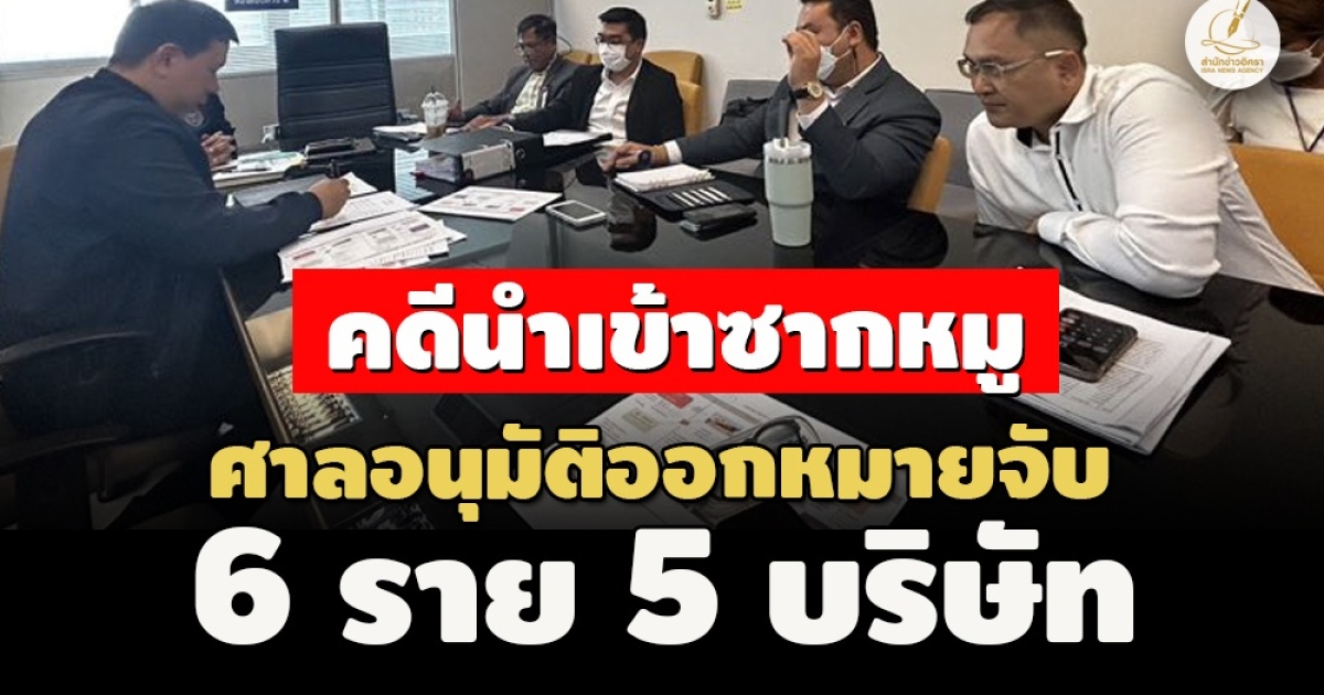 สำนักข่าวอิศรา (www.isranews.org) รายงานว่า เมื่อวันที่ 19 ต.ค.2566 พ.ต.ต.ยุทธนา แพรดำ รองอธิบดีกรมสอบสวนคดีพิเศษ (ดีเอสไอ) ในฐานะรองอธิบดีที่กำกับบริหารคดีพิเศษที่ 59/2566 คดีนำเข้าซากสุกรจากนอกราชอณาจักรโดยมิชอบ เป็นประธานที่ประชุมคณะพนักงานสอบสวนในคดีโดยเร่งด่วน ก่อนที่คณะพนักงานสอบสวนคดีพิเศษ ประกอบด้วย พ.ต.ต.ณฐพล ดิษยธรรม ผู้เชี่ยวชาญคดีพิเศษด้านคุ้มครองผู้บริโภคและสิ่งแวดล้อม หัวหน้าพนักงานสอบสวน ร.ต.อ.ชาญณรงค์ ทับสาร รองผู้อำนวยการปฎิบัติการคดีพิเศษภาค เลขานุการพนักงานสอบสวน และ คณะพนักงานสอบสวน มีมติเอกฉันท์ ให้ออกหมายจับผู้กระทำความผิด จำนวน 6 ราย 5 บริษัท ที่เกี่ยวข้องกับการกระทำความผิด เนื่องจากเกรงว่า ผู้ต้องหาจะหลบหนีออกนอกประเทศ และจะเสียรูปคดี มูลค่าการกระทำความผิดและค่าเสียหายต่อรัฐมีจำนวนมาก