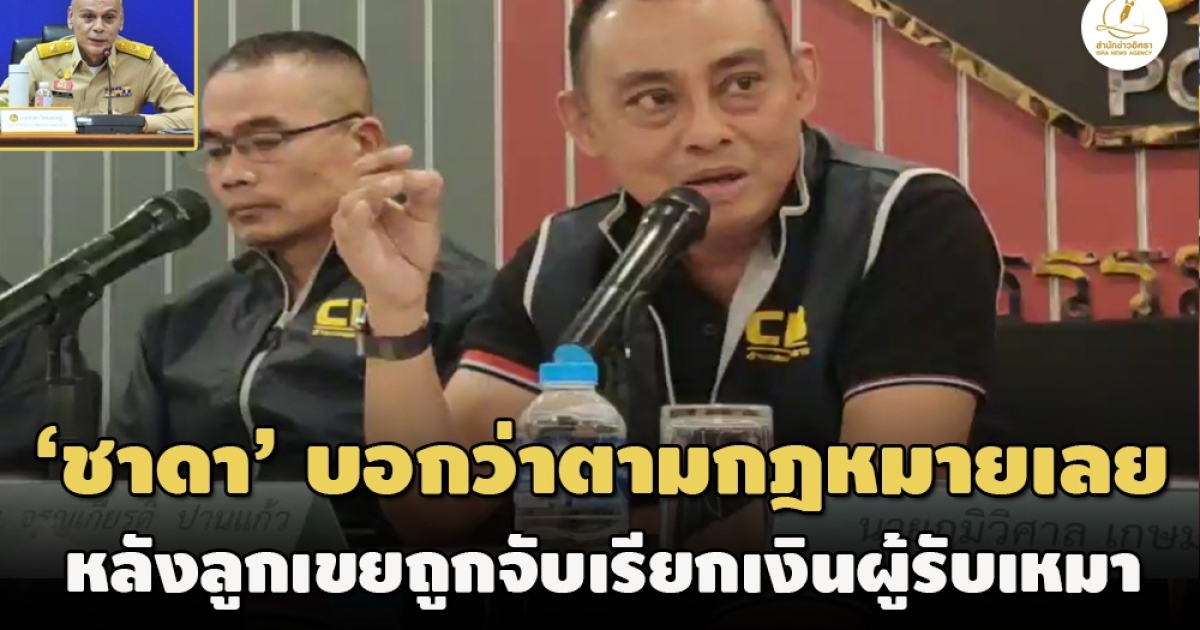3ป.ร่วมแถลงข่าวจับลูกเขยชาดาพร้อมพวกร่วมกันขู่ผู้รับเหมาถอนตัวสัญญาแทงก์น้ำหมู่บ้าน 3 ล้านบาท ก่อนเรียกรับเงิน 6 แสน-ผบก.ปปป.รับคุยกับ'ชาดา'แล้ว อีกฝ่ายขอให้ว่ากันตามกฎหมายเลย เตือนแล้วใครไม่หยุดก็รับในสิ่งนั้นไป-ขณะผู้ต้องหาทั้งหมดยังให้การปฏิเสธ