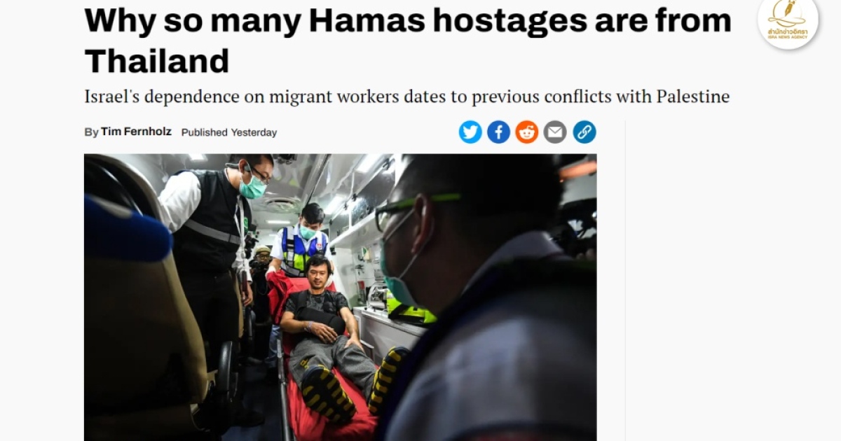 เรียบเรียงจาก:https://qz.com/why-so-many-hamas-hostages-are-from-thailand-1850963541