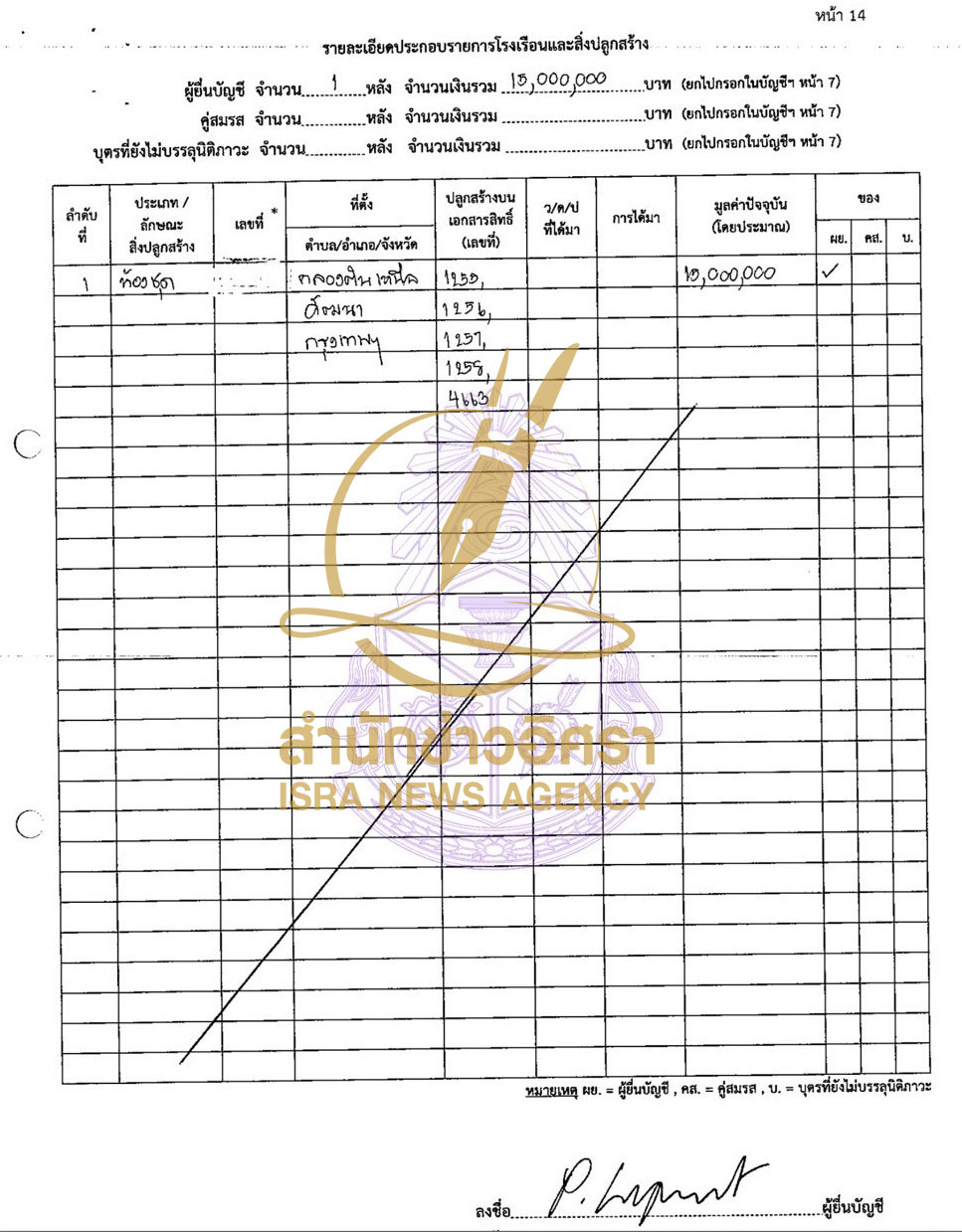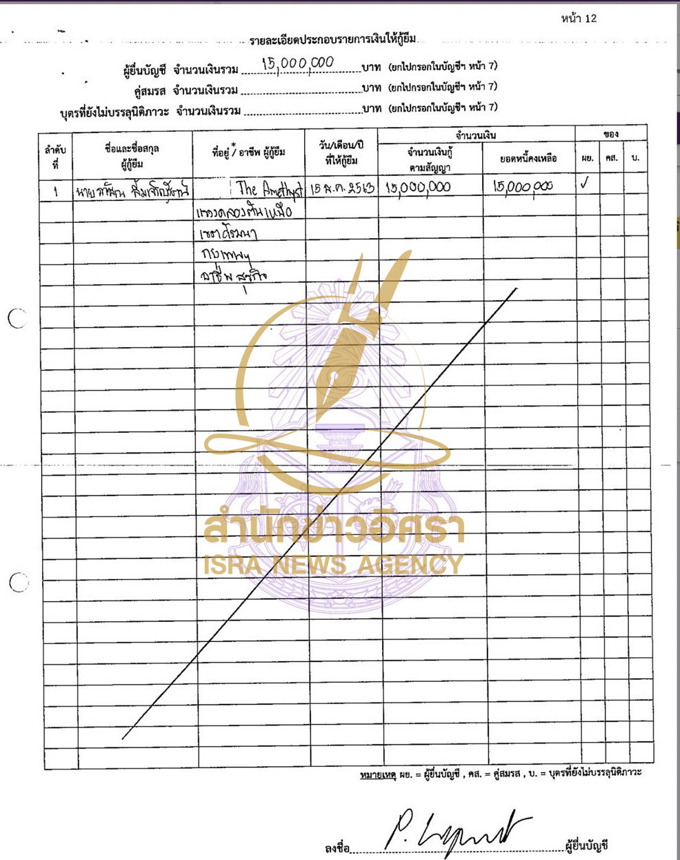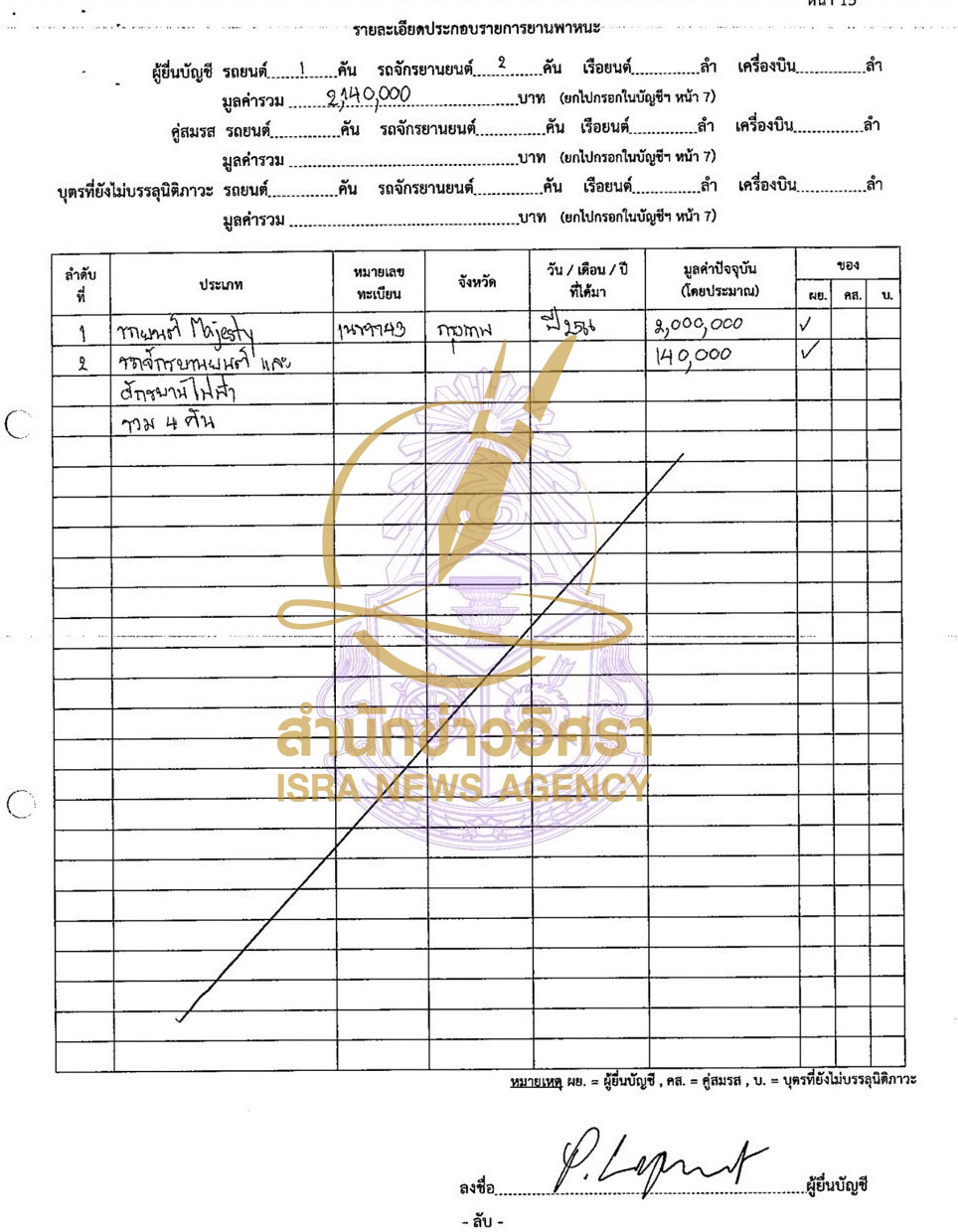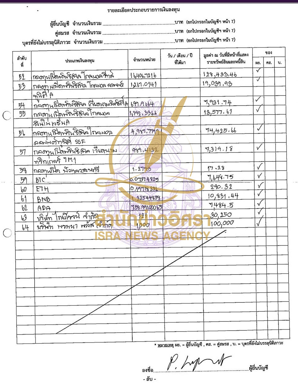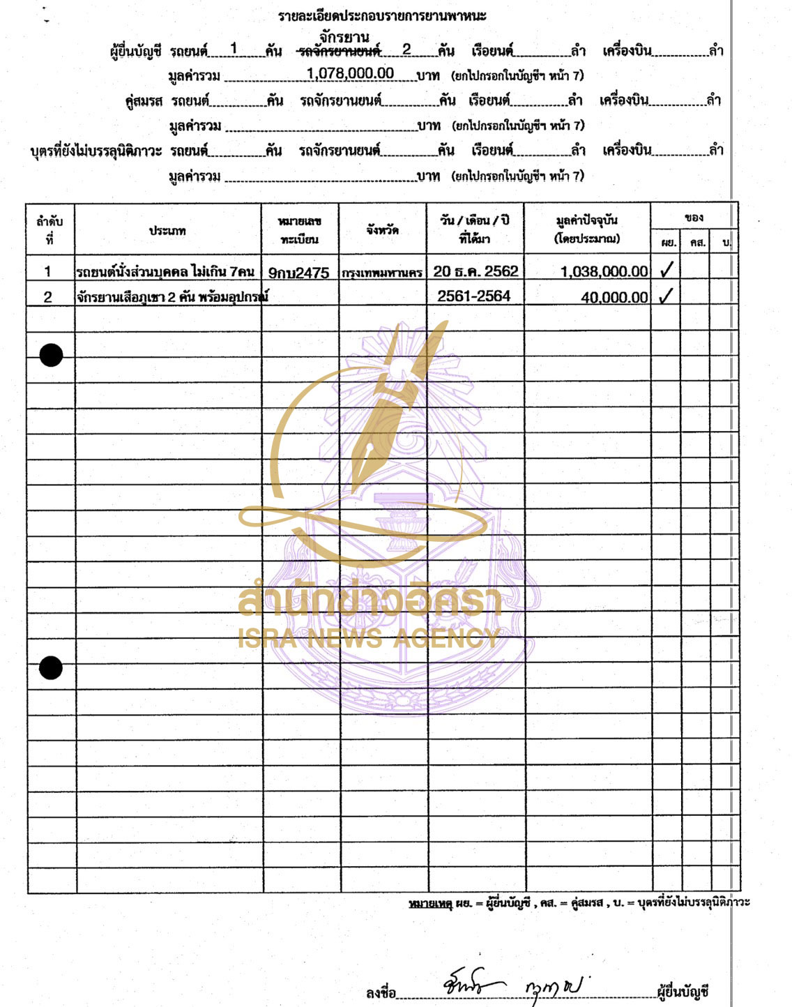 ส่วนคู่สมรส แจ้งมีรายได้ต่อปี 600,000 บาท และรายจ่ายต่อปี 607,529 บาท