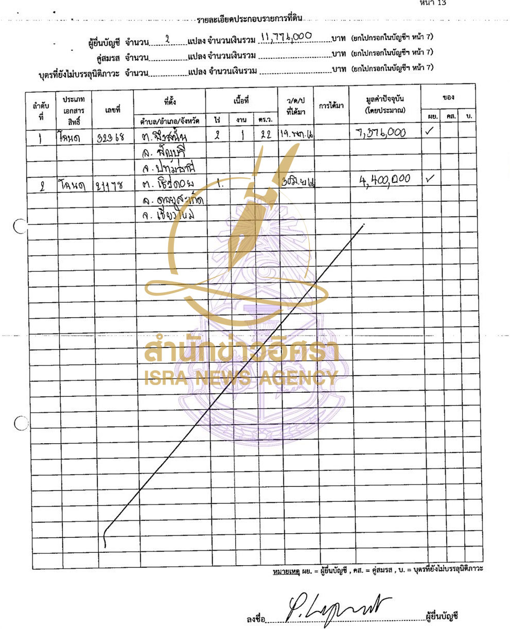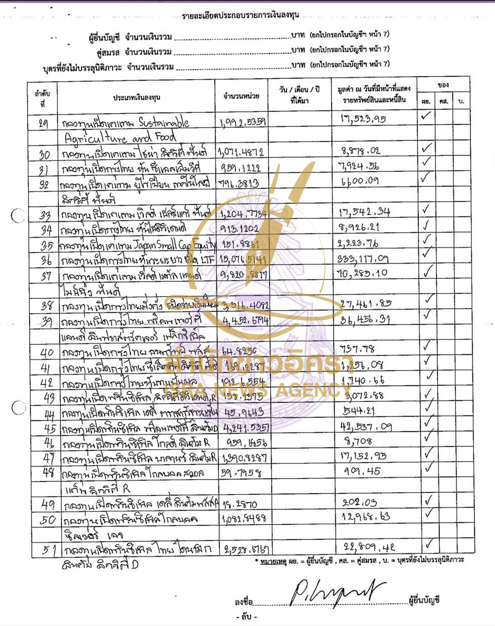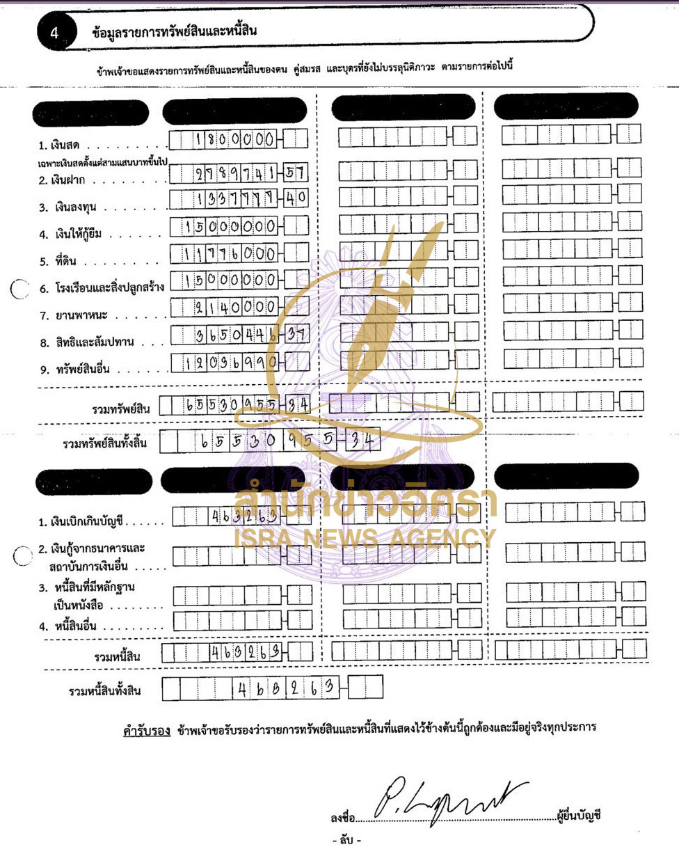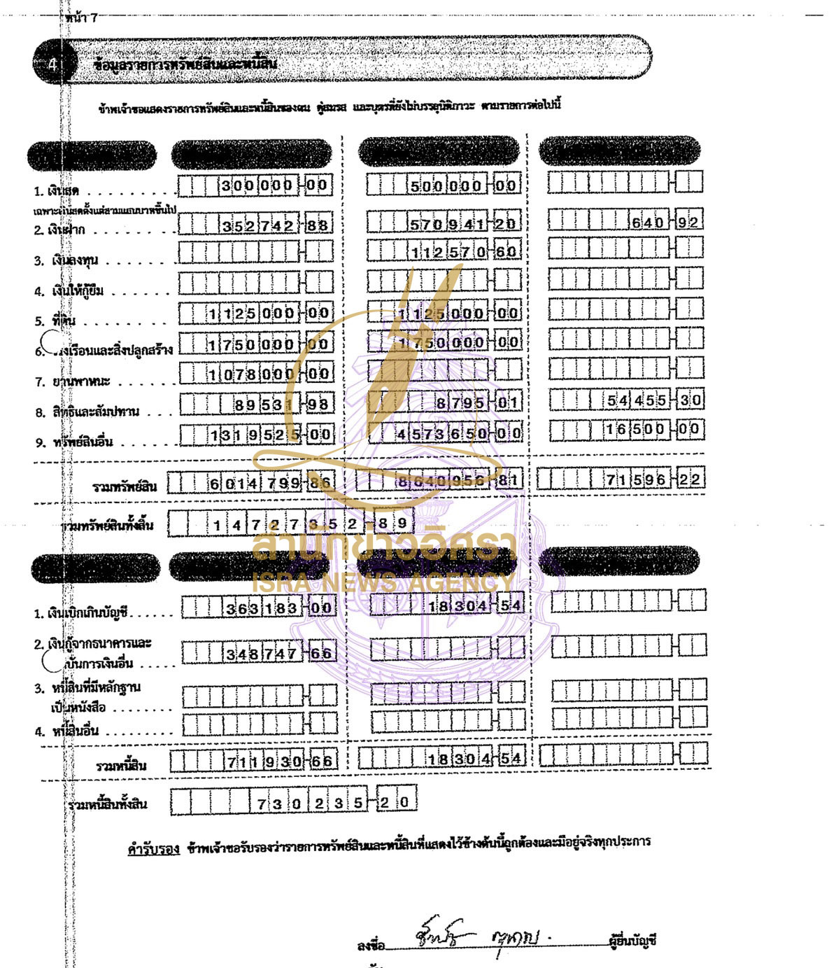 และทรัพย์สินอื่น 4,573,650 บาท หนี้สิน 18,304 บาท เป็นเงินเบิกเกินบัญชี
