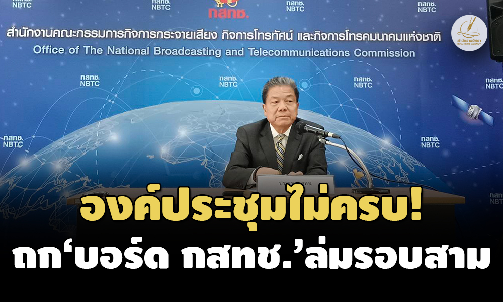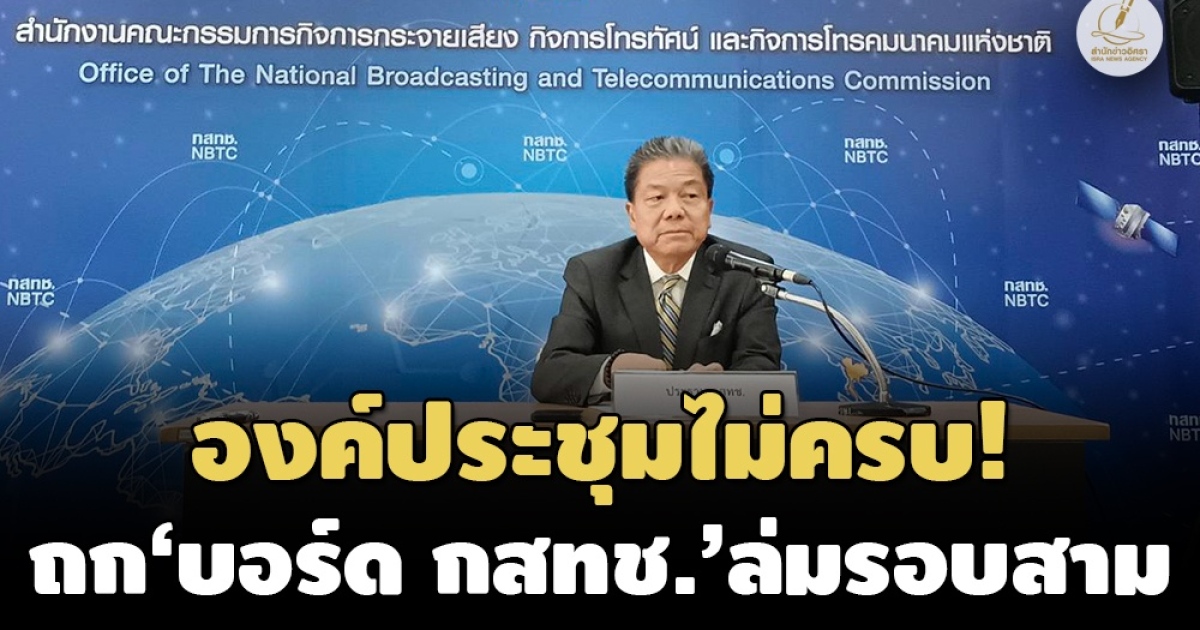 ประชุมบอร์ด กสทช. ล่มเป็นนัดที่ 3 หลัง 4 กรรมการฯ ติดภารกิจ ทำให้ ‘องค์ประชุมไม่ครบ’ ขณะที่ ‘นพ.สรณ’ ระบุพร้อมรับแรงกระแทก กรณีไฟเขียวรวมธุรกิจ AWN-3BB
