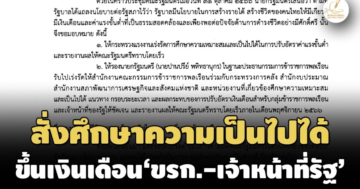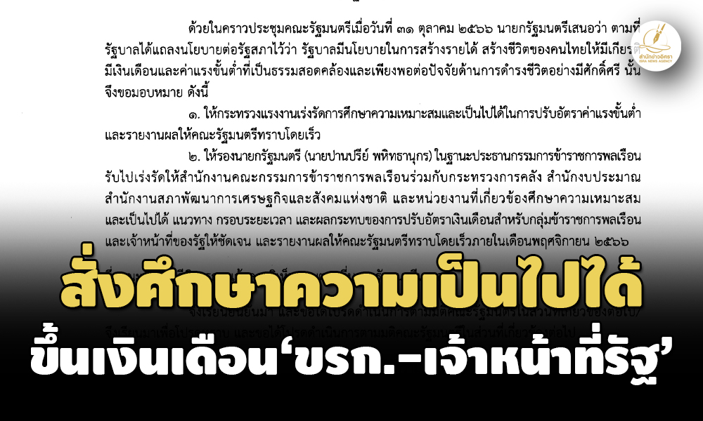 ครม. มอบหมาย ‘ปานปรีย์-สำนักงาน ก.พ.’ ร่วมกับ “ก.คลัง-สำนักงบฯ-สศช.’ ศึกษาความเป็นไปได้-แนวทาง-ผลกระทบ ปรับขึ้นเดือน ‘ข้าราชการ-ลูกจ้าง’ ให้รายงานภายใน พ.ย.นี้