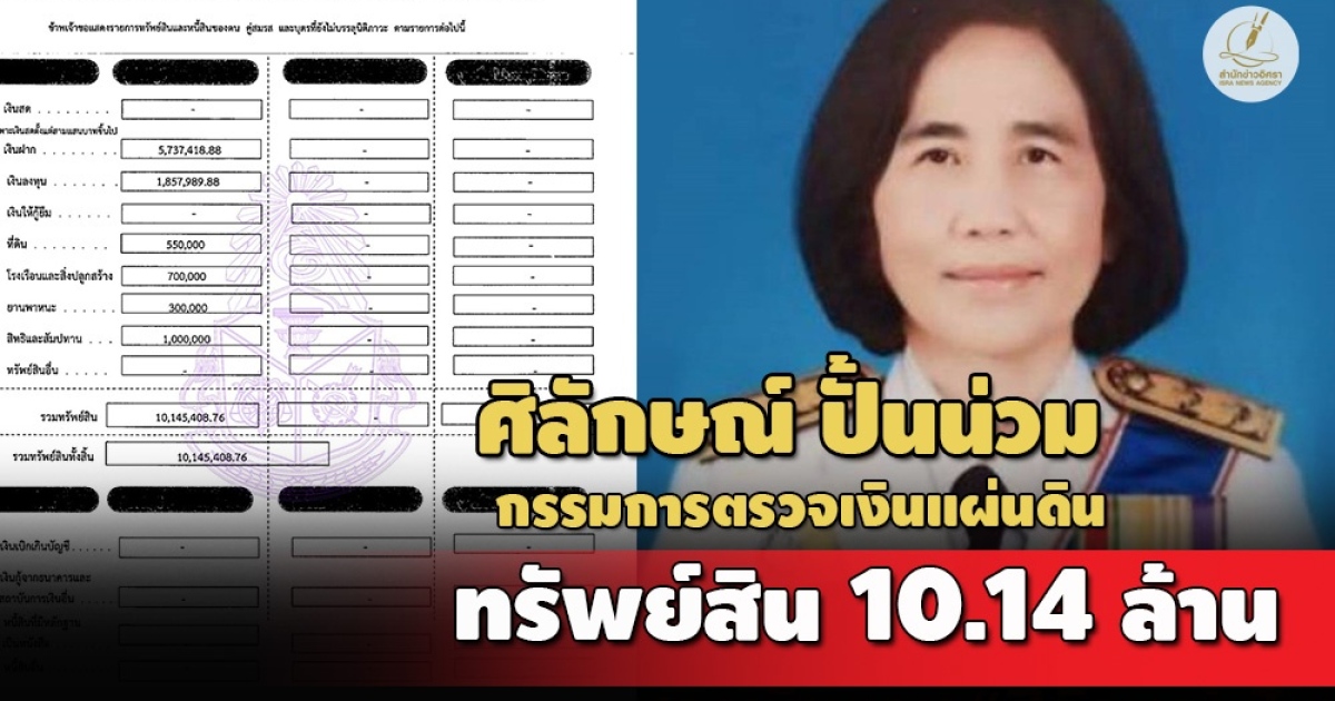 ป.ป.ช.เปิดบัญชีทรัพย์สิน 'ศิลักษณ์ ปั้นน่วม' กรรมการตรวจเงินแผ่นดิน มีทรัพย์สิน 10 ล้าน มีที่ดินใน อ.คลองหลวง ปทุมธานี รายได้ 2.7 ล้าน./ปี