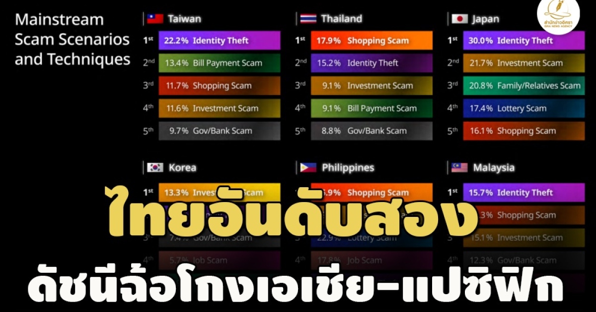 กลุ่มพันธมิตรต้านสแกมจากเนเธอร์แลนด์เผยไทยติดอันดับ 2 ดัชนีฉ้อโกง กลุ่มประเทศภูมิภาคเอเชียแปซิฟิก พบเหตุฉ้อโกงมากสุดมาจากโทรศัพท์ถึง 59 เปอร์เซ็นต์ อีก 27.8 เปอร์เซ็นต์มาจาก SMS ขณะเหยื่อเกือบ 70 เปอร์เซ็นต์แจ้งเจ้าหน้าที่แล้วว่าถูกฉ้อโกงแต่ไม่เคยได้การชดเชย