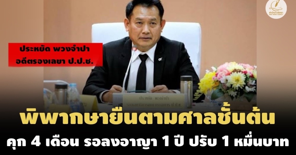 ศาลฎีกาพิพากษาชั้นอุทธรณ์ คดี 'ประหยัด พวงจำปา' อดีตรองเลขาฯป.ป.ช. ยื่นบัญชีเท็จ ยืนตามศาลชั้นต้น คุก 4 เดือน รอลงอาญา 1 ปี ปรับ 10,000 บาท