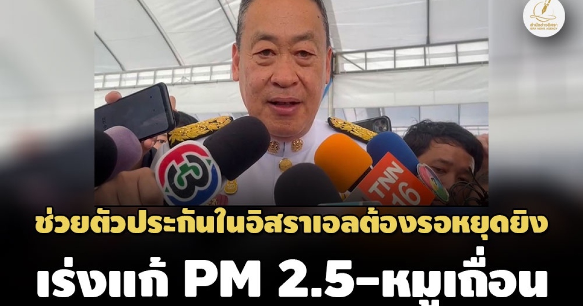นายกรัฐมนตรีเผยช่วยตัวประกันในอิสราเอลต้องรอให้มีการพักหยุดยิง ยันข่าวลือแรงงานไทยที่เหลือจะไม่ได้ปล่อยตัวไม่ใช่เรื่องจริง เร่งแก้ปัญหาฝุ่น PM2.5-กำชับขยายผลหมูเถื่อนถึงรายใหญ่