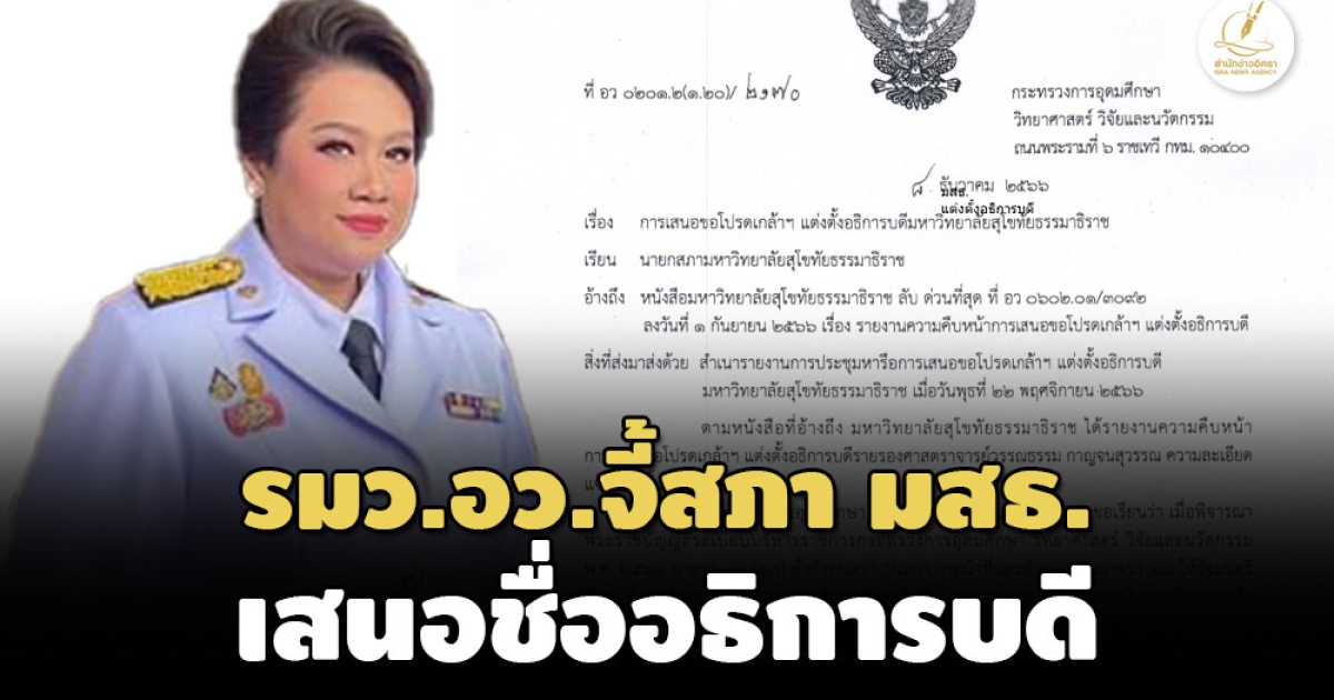 - ยังไม่คืบหน้า! ปมเสนอโปรดเกล้าฯแต่งตั้งอธิการบดี อว.จี้สภา มสธ.ทำบันทึกชี้แจง
