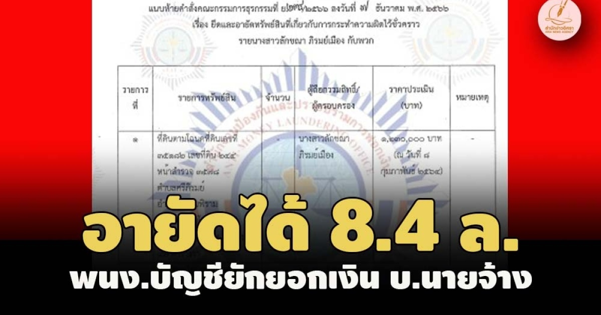 อีกคดี! ปปง.ยึดอายัดทรัพย์ ที่ดิน ห้องชุด เงินฝากรวม 8.4 ล. พนักงานบัญชี ยักยอกเงินนายจ้าง บ.บัวทอง เอ็กซ์ซิบิชันฯ ใช้ความไว้เนื้อเชื่อใจเขียนใบเบิกเงินเท็จ ถอนเงินสด 693 ครั้ง เสียหาย 162.3 ล. พบนำไปใช้ส่วนตัวก่อสร้างสปอร์ตคลับ