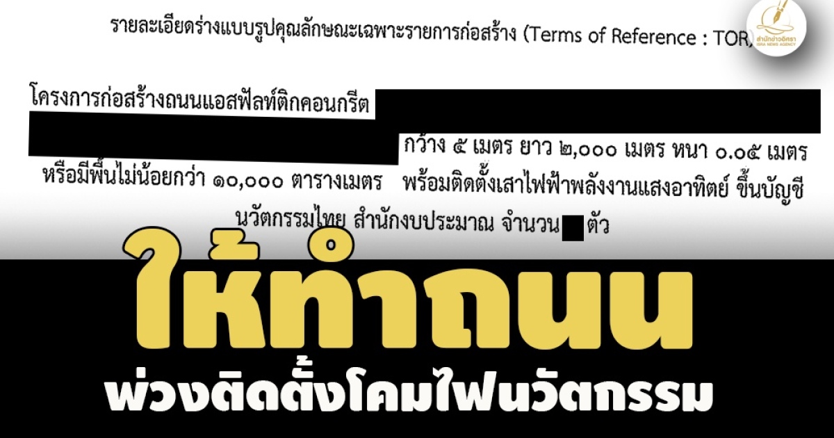 ล่าสุด สำนักข่าวอิศรา (www.isranews.org) สืบค้นฐานข้อมูลจัดซื้อจัดจ้างหน่วยงานภาครัฐ พบว่า ในช่วงปี 2566 มีองค์กรปกครองส่วนท้องถิ่น (อปท.) หลายแห่ง ดำเนินงานโครงการประกวดราคาจ้างก่อสร้างก่อสร้างถนนแอสฟัลท์ติกคอนกรีต แต่มีการระบุเนื้องานให้ผู้รับเหมาที่เข้ามารับงานต้องดำเนินการติดตั้งเสาไฟฟ้าพลังงานแสงอาทิตย์ ขึ้นบัญชีนวัตกรรมไทย สำนักงบประมาณ ด้วย