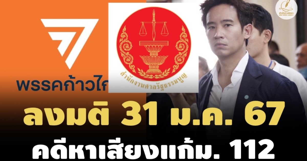 ศาลรัฐธรรมนูญนัดวันลงมติ คดี 'พิธา ลิ้มเจริญรัตน์-พรรคก้าวไกล' หาเสียงแก้ประมวลกฎหมายอาญามาตรา 112 ล้มล้างการปกครองหรือไม่ 31 ม.ค. 2567 ด้าน 'ชัยธวัช' มั่นใจไม่ถูกยุบพรรค มากสุดยุติการกระทำ