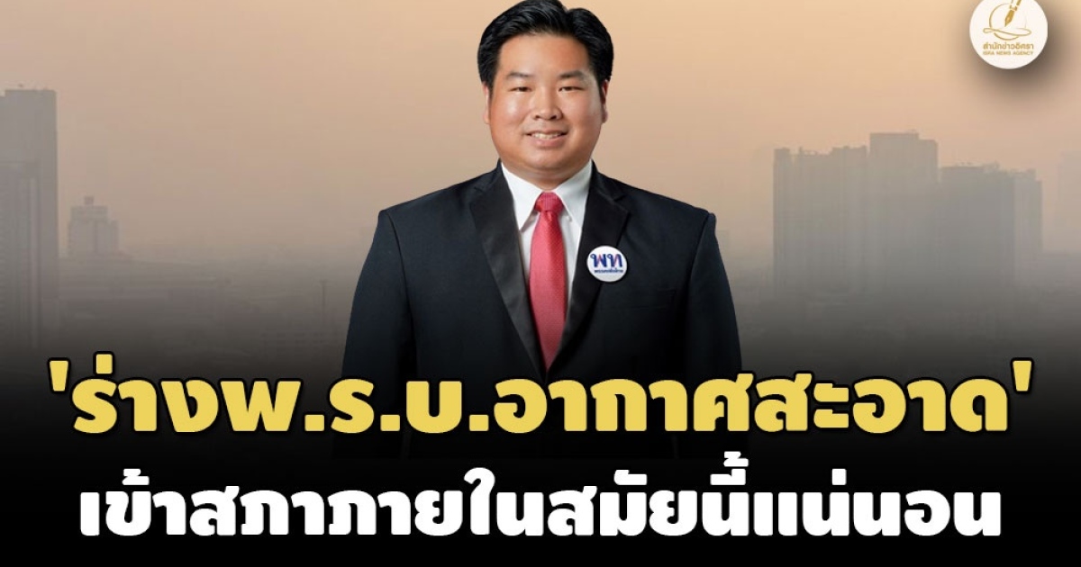 'ศรัณย์ ทิมสุวรรณ' เลขาวิปรัฐบาลเผยความคืบหน้า 'ร่างพ.ร.บ.บริหารจัดการเพื่ออากาศสะอาด พ.ศ...' ขณะนี้อยู่ในขั้นกฤษฎีกา ยืนยันเข้าทันประชุมสภาสมัยนี้แน่นอน คาดหลังปีใหม่น่าจะเรียบร้อย