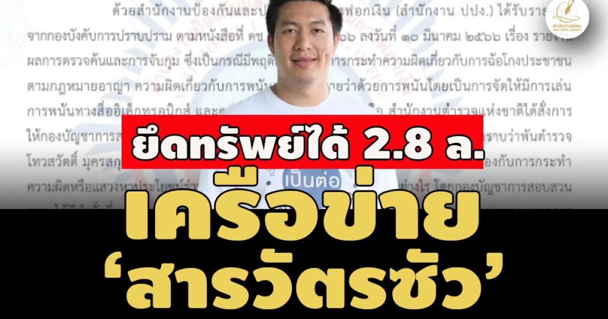 ปปง.ยึดทรัพย์ ‘ชัยวิชิต ฤกษ์วลีกุล’ กับพวก เครือข่าย พ.ต.ท.วสวัตดิ์ มุครสกุล ได้ 2 รายการ 2.8 ล. คดีเล่นพนันทางสื่ออิเล็กทรอนิกส์ หลังศาลจังหวัดจันทบุรีพิพากษาจำคุกกลุ่มผู้ต้องหา 10 รายคนละ 6 เดือน