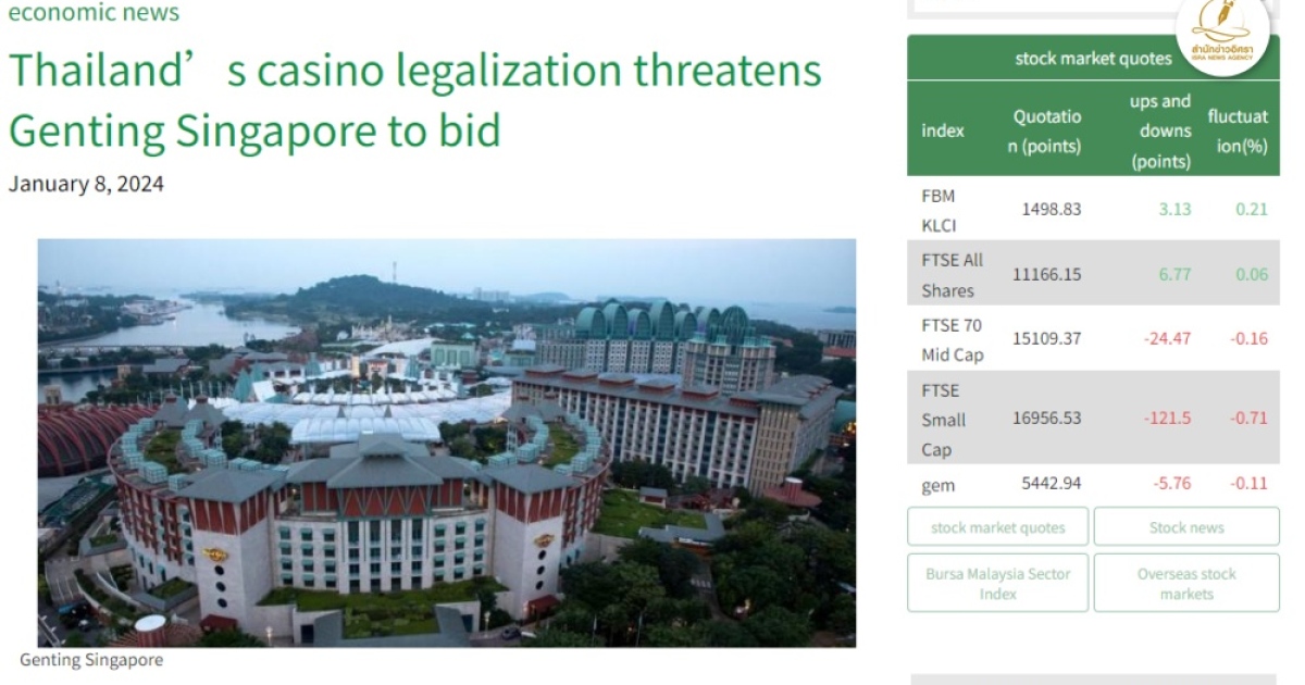 เรียบเรียงจาก:https://www.enanyang.my/财经新闻/泰国赌场合法化带来威胁-云顶新加坡或将出手竞标