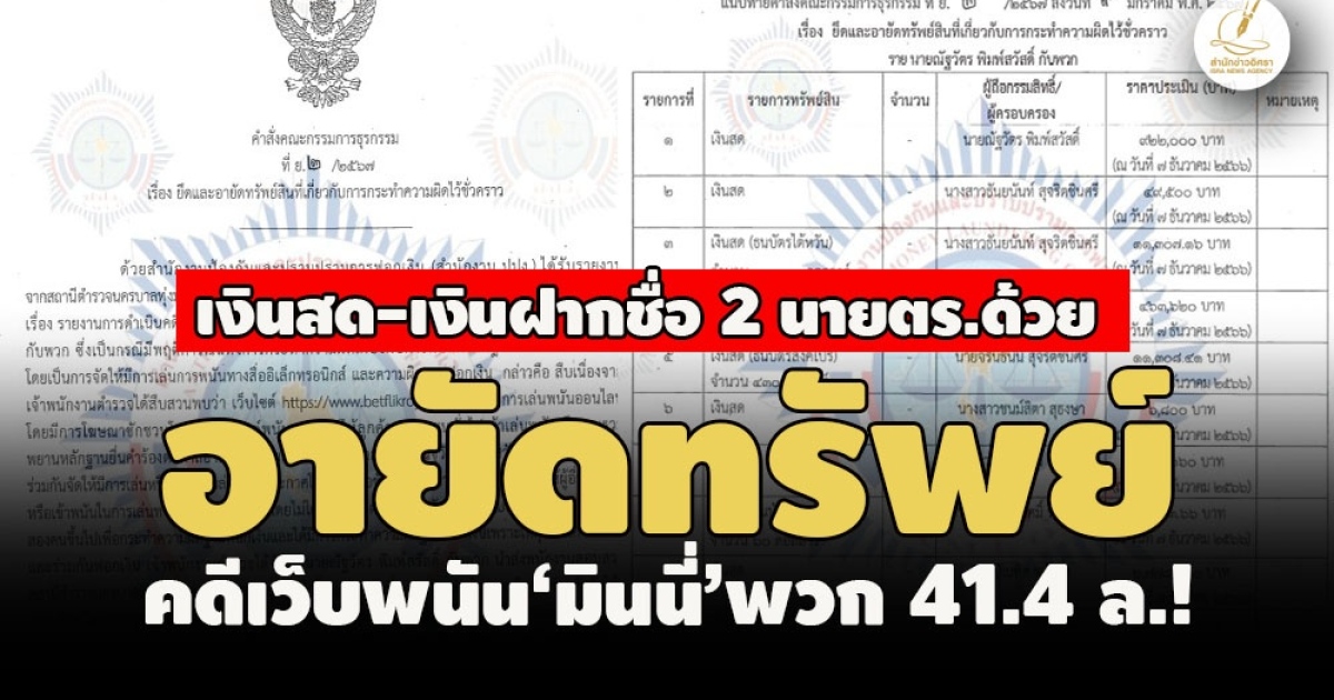 ปปง.สั่งยึดอายัดทรัพย์สินคดีพนันออนไลน์-ฟอกเงิน‘ณัฐวัตร พิมพ์สวัสดิ์’พร้อม‘ธันยนันท์-มินนี’พวก 255 รายการ 41.4 ล. เครื่องประดับ พระเครื่อง รถยนต์ ที่ดิน มี เงินสด พ.ต.ท.คริษฐ์ 4.6 แสน เงินฝาก ‘เขมริมทร์’ ถือกรรมสิทธิ์/ผู้ครอบครองด้วย 4 บัญชี 7.4 แสน