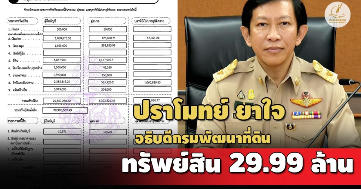 ป.ป.ช.เปิดทรัพย์สิน 'ปราโมทย์ ยาใจ' อธิบดีกรมพัฒนาที่ดิน มีทรัพย์สินกว่า 29.99 ล้าน เงินสด ที่ดิน 5 แปลง อาวุธปืน 3 กระบอก รายได้ 1.8 ล้าน/ปี