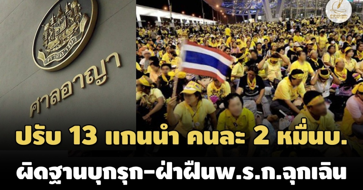 ศาลอาญาสั่งปรับแกนนำพันธมิตรฯ 13 รายคนละ 20,000 บาท กรณีปิดสนามบินปี 2551 ผิดฐานบุกรุก-ฝ่าฝืนพ.ร.ก.ฉุกเฉิน ส่วนข้อหาอื่นยกฟ้อง