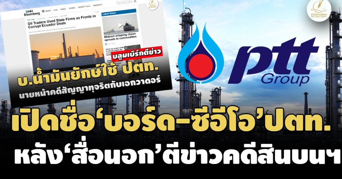 เปิดชื่อ ‘บอร์ด-ซีอีโอ ปตท.-รมต.พลังงาน’ ช่วงปี 51-55 หลังสื่อนอกตีข่าว อ้าง ‘ปตท.’ ถูก 'บริษัทค้าน้ำมันยักษ์ใหญ่' ใช้เป็น ‘นายหน้า’ ทำข้อตกลงซื้อขายน้ำมันจาก ‘เอกวาดอร์’ ที่มีการจ่ายสินบน