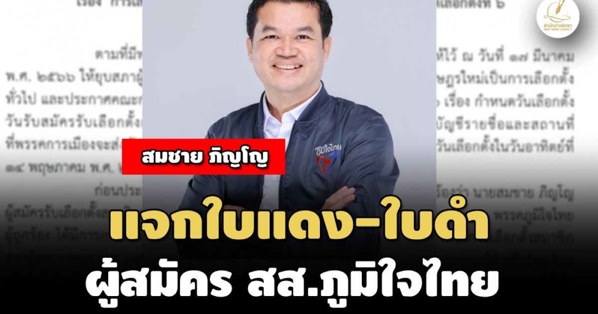กกต.สั่งยื่นคำร้องต่อศาลฎีกาเพิกถอนสิทธิสมัครรับเลือกตั้ง-เลือกตั้ง 'สมชาย ภิญโญ' ผู้สมัครสส.ภูมิใจไทย จ.นครราชสีมา เขตเลือกตั้งที่ 6 เหตุถ้อยคำปราศรัย “เดี๋ยวผมได้เป็น สส. มีงบไปเพิ่งงาน จะพา อสม. ไปล่องแพกาญ ร้องเพลง” เป็นการมอบผลประโยชน์จูงใจให้ประชาชนลงคะแนน