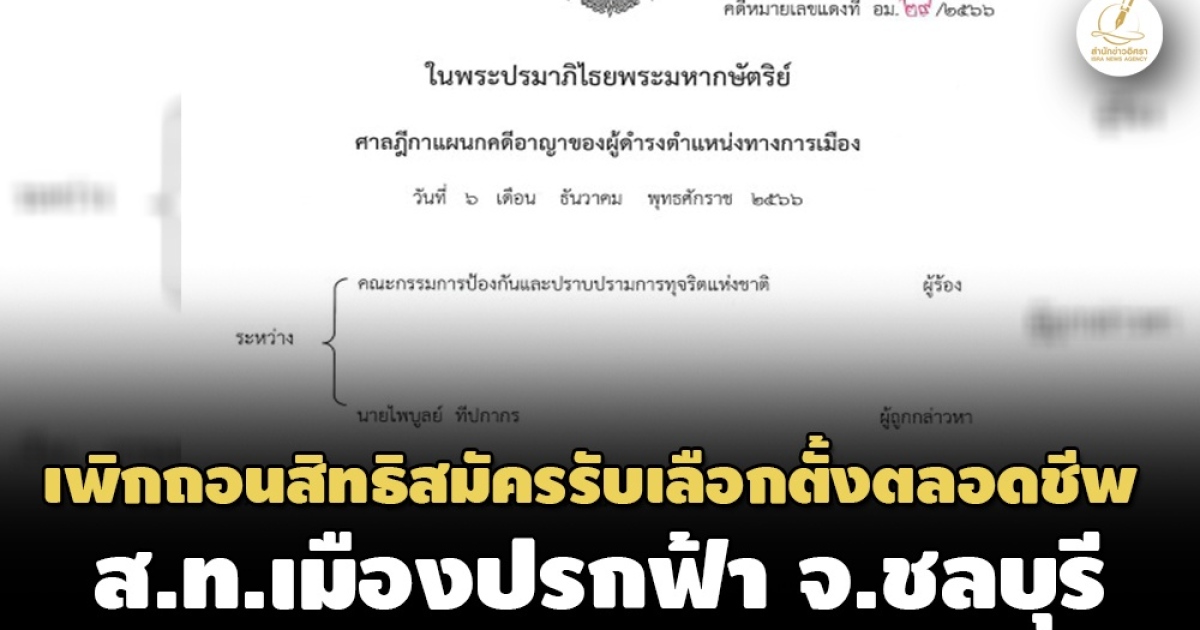 เพิกถอนสิทธิสมัครรับเลือกตั้งตลอดชีวิต!รองนายก อบต.หน้าพระธาตุ ชลบุรี ยื่นบัญชีเท็จ ป.ป.ช.