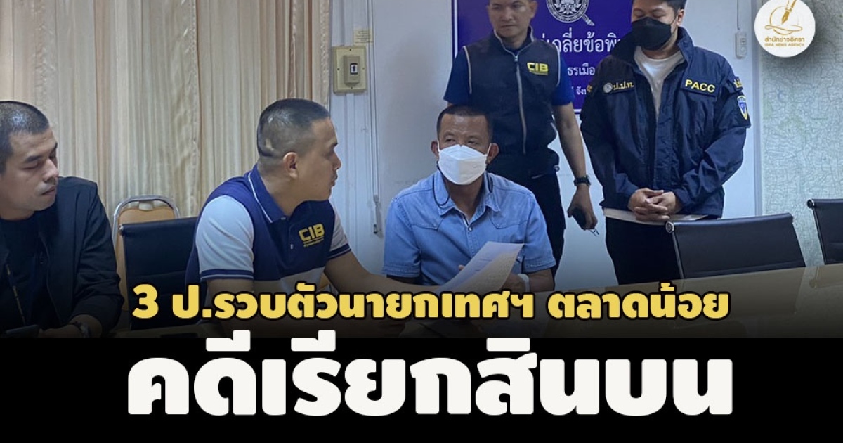 ปปป.-ป.ป.ท.-ป.ป.ช. โชว์หมายจับรวบตัว 'ประชุม ขวัญเมือง' นายกเทศมนตรีตำบลตลาดน้อย สระบุรี เรียกรับเงินสินบนผู้รับเหมา 7 แสน คิดเป็นร้อยละ 12% มูลค่างานทั้งหมด แถมสำรองค่าใช้จ่ายต่างๆ ก่อนถูกเรียกเก็บเพิ่มอีก 2 แสน เบื้องต้นเจ้าตัวให้การปฏิเสธ แต่จนท.ไม่ปักใจเชื่อจึงนำตัวส่งพนง.สอบสวนดำเนินการตามกฎหมายต่อไปแล้ว