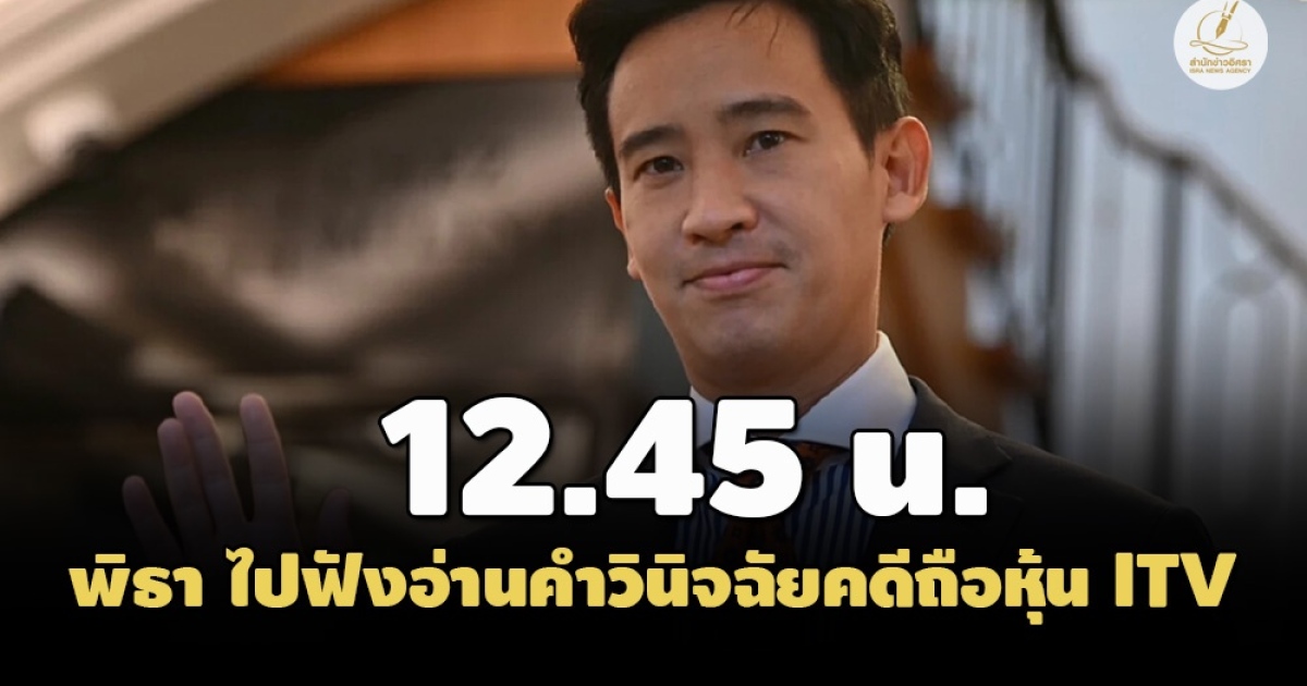 โดย ทางพรรคก้าวไกล แจ้งกำหนดการของ นายพิธา ลิ้มเจริญรัตน์ ว่าจะเดินทางเข้ารับฟังการอ่านคำวินิจฉัยศาลรัฐธรรมนูญคดีหุ้นสื่อไอทีวีด้วยตัวเอง โดยจะถึงที่ศาลรัฐธรรมนูญ ศูนย์ราชการ แจ้งวัฒนะ เวลาประมาณ 12.45 น.