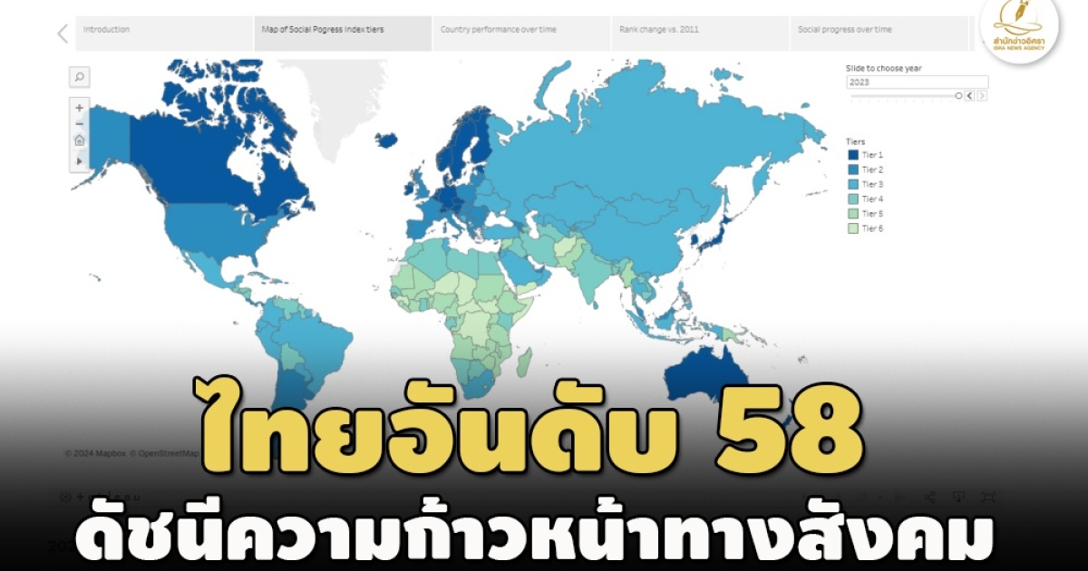 สำนักข่าวอิศรา (www.isranews.org) รายงานข่าวการจัดอันดับดัชนีความก้าวหน้าทางสังคม (Social Progress Index - SPI) ปี 2566 ที่จัดทำโดยองค์การ Social Progress Imperative องค์กรสัญชาติอเมริกันที่ทำวิจัยด้านคุณภาพชีวิตของแต่ละประเทศ โดยในส่วนของประเทศไทยนั้นพบว่ามีคะแนน 70.67 เต็ม 100 คะแนนอยู่ในอันดับที่ 58 จาก170 ประเทศ และอยู่ในอันดับสามของอาเซียน ในขณะที่อันดับผลิตภัณฑ์มวลรวมหรือว่าจีดีพีต่อหัวพบว่าอยู่ในอันดับที่ 66 จาก 164 ประเทศที่ได้มีการสำรวจ ทำให้ประเทศไทยอยู่ในเกณฑ์คะแนนว่าสามาถทำได้ตามเป้าหมายที่คาดหวังเอาไว้