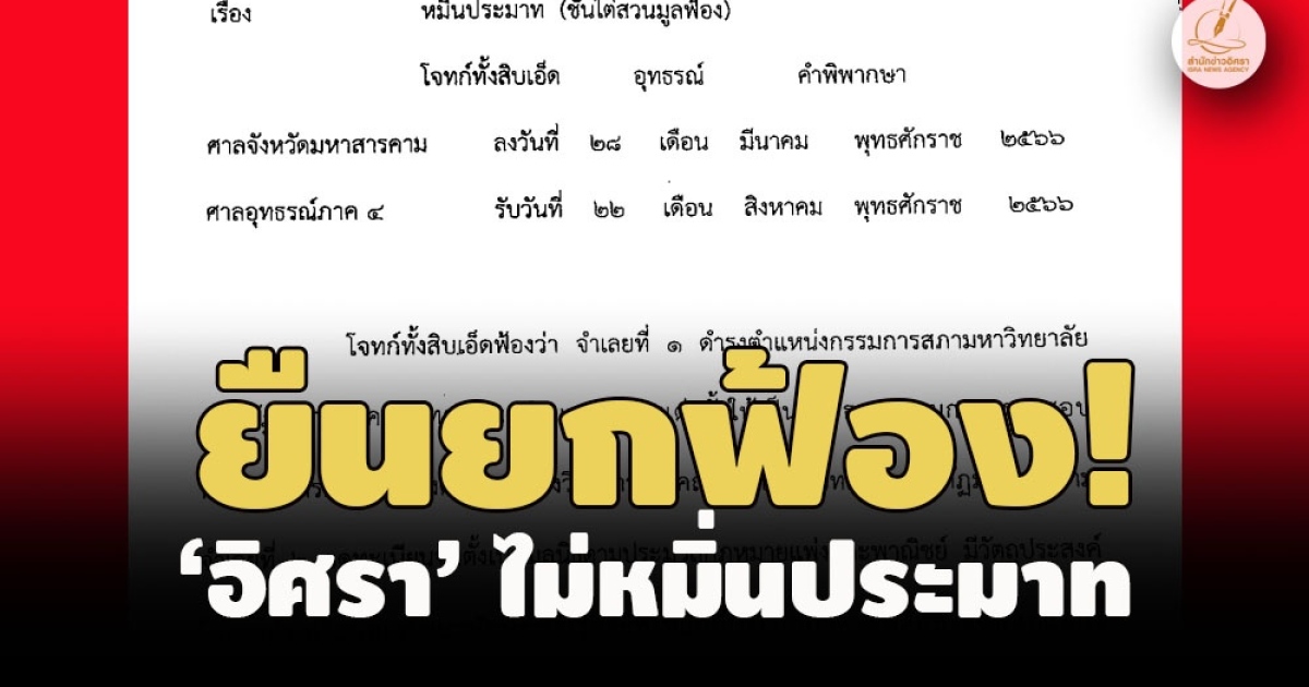 ศาลอุทธรณ์ภาค 4 ตรวจสํานวนประชุมปรึกษาแล้ว ข้อเท็จจริงรับฟังเป็นยุติในเบื้องต้นว่า เมื่อวันที่ 20 ธันวาคม 2564 สํานักข่าวอิศรา หรือเว็บไซต์ www.isranews.org ซึ่งเผยแพร่โดยระบบสื่ออิเล็กทรอนิกส์ ลงข้อความในระบบอิเล็กทรอนิกส์ พาดหัวข่าวว่า “เปิดชื่อ 44 ผศ.- รศ. ผู้เสียหาย ขบวนการปลอมลายเซ็น กรณี มรภ.สารคาม สั่งถอดถอนตําแหน่ง” “เปิดชื่อ 44 ผู้เสียหาย ผศ. -รศ. มรภ. มหาสารคาม มีคําสั่งถอดถอน หลังพบขบวนการปลอมลายเซ็น” และมีเนื้อข่าวว่า “จนถึงวันนี้ ผู้ขอตำแหน่ง ผศ.รศ. ทั้ง 44 ราย ยังอยู่ในฐานะผู้เสียหาย และยังไม่พบพยานหลักฐานว่ามีส่วนเกี่ยวข้องกับขบวนการดังกล่าวหรือไม่ ขณะที่เมื่อวันที่ 11 ธันวาคม 2564 จำเลยที่ 1 กรรมการสภามหาวิทยาลัยราชภัฏมหาสารคาม ผู้ทรงคุณวุฒิ เปิดเผยว่า คณาจารย์ทั้ง 44 ราย ยังสามารถใช้สิทธิอุทธรณ์คําสั่งและให้ข้อมูลเพื่อแสดงความ ไม่มีส่วนเกี่ยวข้องได้ตามขั้นตอนราชการ...”