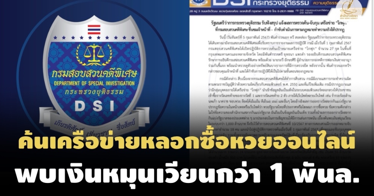 กรมสอบสวนคดีพิเศษค้นเครือข่าย 'โกฟุก' หลอกประชาชนซื้อหวยออนไลน์ พบเงินหมุนเวียนกว่า 1,000 ล้านบาท-สร้างหลักฐานส่งออกน้ำมันเท็จกว่า 10 ปี รัฐเสียหาย 10,000 ล้าน ยึดทรัพย์ 14 รายการ-เงินสด 55 ล้าน-ทองหนัก 350 บาท