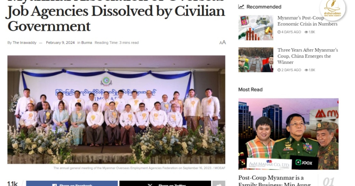 เรียบเรียงจาก:https://www.irrawaddy.com/news/burma/myanmar-association-of-overseas-job-agencies-dissolved-by-civilian-government.html