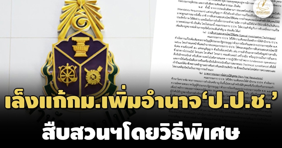 ‘สำนักงาน ป.ป.ช.’ เตรียมแก้กฎหมายเพิ่มอำนาจ ‘คณะกรรมการ ป.ป.ช.’ สืบสวนสอบสวนโดยวิธีพิเศษ เปิดทางใช้เครื่องมือสื่อสาร-อิเล็กทรอนิกส์ สะกดรอย-หาพยานหลักฐาน ในการตรวจสอบ-ไต่สวนฯคดีทุจริตได้
