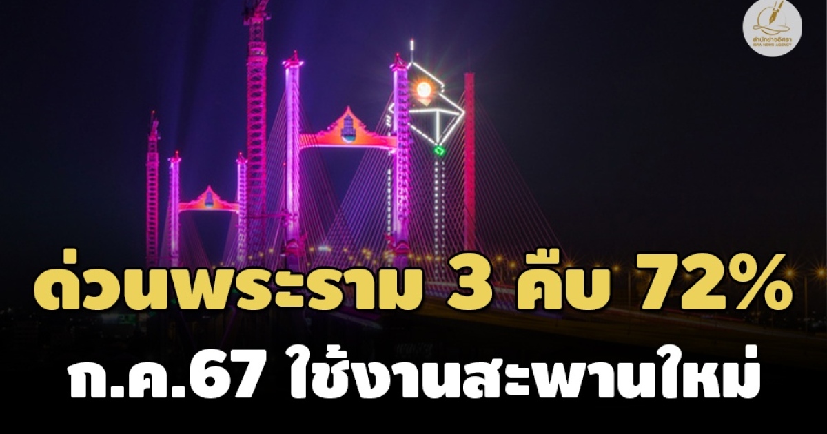 กทพ.เผยความคืบหน้าทางด่วนพระราม 3 - ดาวคะนอง งานโยธา 4 สัญญา เสร็จแล้ว 1 เหลืออีก 3 คืบหน้ารวม 72% วางกรอบสร้างเสร็จปี 68 เร่งทำทางเชื่อมขึ้น-ลงถ.สุขสวัสดิ์หวังเปิดใช้สะพานใหม่คู่ขนานสะพานพระราม 9 เดือน ก.ค.นี้ เตรียมเข็นงานระบบเปิดประมูลกลางปี 67