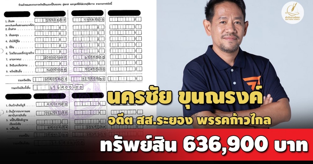 ป.ป.ช.เปิดทรัพย์สิน 'นครชัย ขุนณรงค์' อดีต สส.ระยอง พรรคก้าวไกล มีทรัพย์สินกว่า 6 แสนบาท รถยนต์ 1 คัน สะสมพระเครื่อง รายได้ 3.6 แสน/ปี