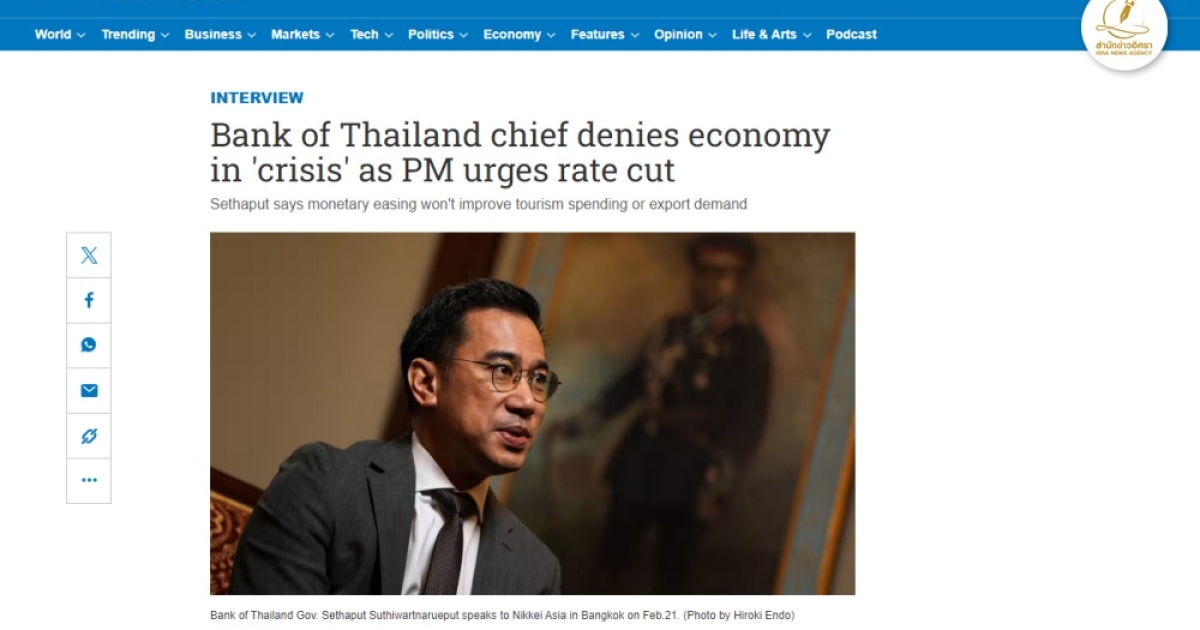 เรียบเรียงจาก:https://asia.nikkei.com/Editor-s-Picks/Interview/Bank-of-Thailand-chief-denies-economy-in-crisis-as-PM-urges-rate-cut