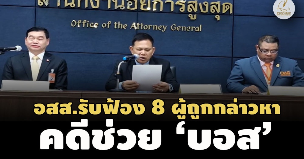 ทีมโฆษกแถลงเป็นทางการ อัยการสูงสุดรับฟ้อง 8 ผู้ถูกกล่าวหา คดีช่วย 'บอส อยู่วิทยา'แล้ว หลัง ป.ป.ช.มีมติส่งเรื่องให้ 'สมยศ พุ่มพันธ์ม่วง-เนตร นาคสุข' โดนด้วย เผยหักความเห็นสำนักงานคดีปราบปรามการทุจริต ไม่ต้องตั้งคณะทำงานร่วมพิจารณาข้อไม่สมบูรณ์