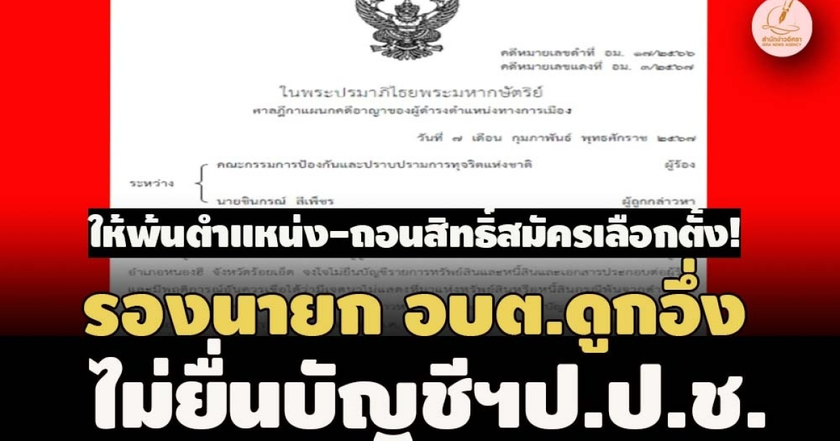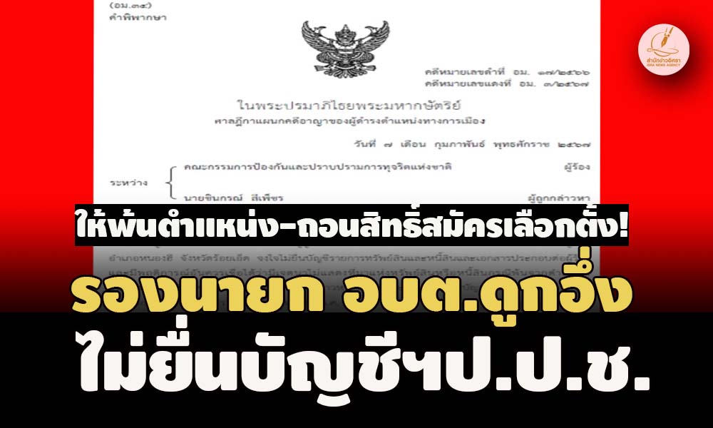 - ศาลฎีกาฯสั่งเพิกถอนสิทธิสมัครรับเลือกตั้งตลอดชีพ นายก ทต.ขวาว จงใจไม่ยื่นบัญชีฯ