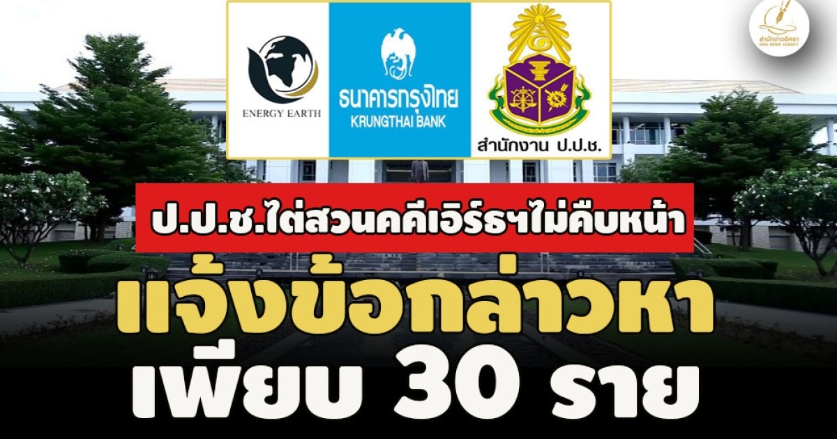 เผยความคืบหน้า ป.ป.ช.ไต่สวนคดี บมจ.เอ็นเนอร์ยี่ เอิร์ธฯ ใช้เอกสารเท็จเบิกเงินสินเชื่อกรุงไทยชำระค่าถ่านหินนำเข้าจากอินโดนีเซีย แจ้งข้อกล่าวหา ผู้เกี่ยวข้องเพียบกว่า 30 คน หลังพบมีอดีตกรรมการธนาคาร-จนท.เกี่ยวพันจำนวนมาก แต่ปัจจุบันยังไม่มีความคืบหน้ามากนัก