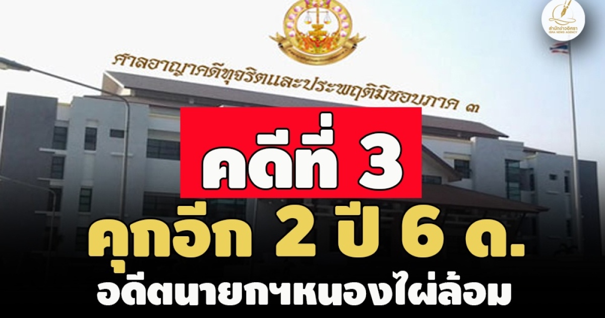 เผยแพร่ความคืบหน้าผลคดีกล่าวหา 'ทองหล่อ เอี่ยมวงศ์' อดีตนายกเทศมนตรีตำบลหนองไผ่ล้อม นครราชสีมา คดีที่ 3 ทุจริตโครงการจัดงานพิธีทำบุญ-เปิดสำนักงานใหม่ ปี 2551 ล่าสุด ศาลอาญาคดีทุจริตประพฤติมิชอบภาค 3 พิพากษาลงโทษจำคุกอีก 2 ปี 6 เดือน - นับโทษต่อคดีเดิมด้วย
