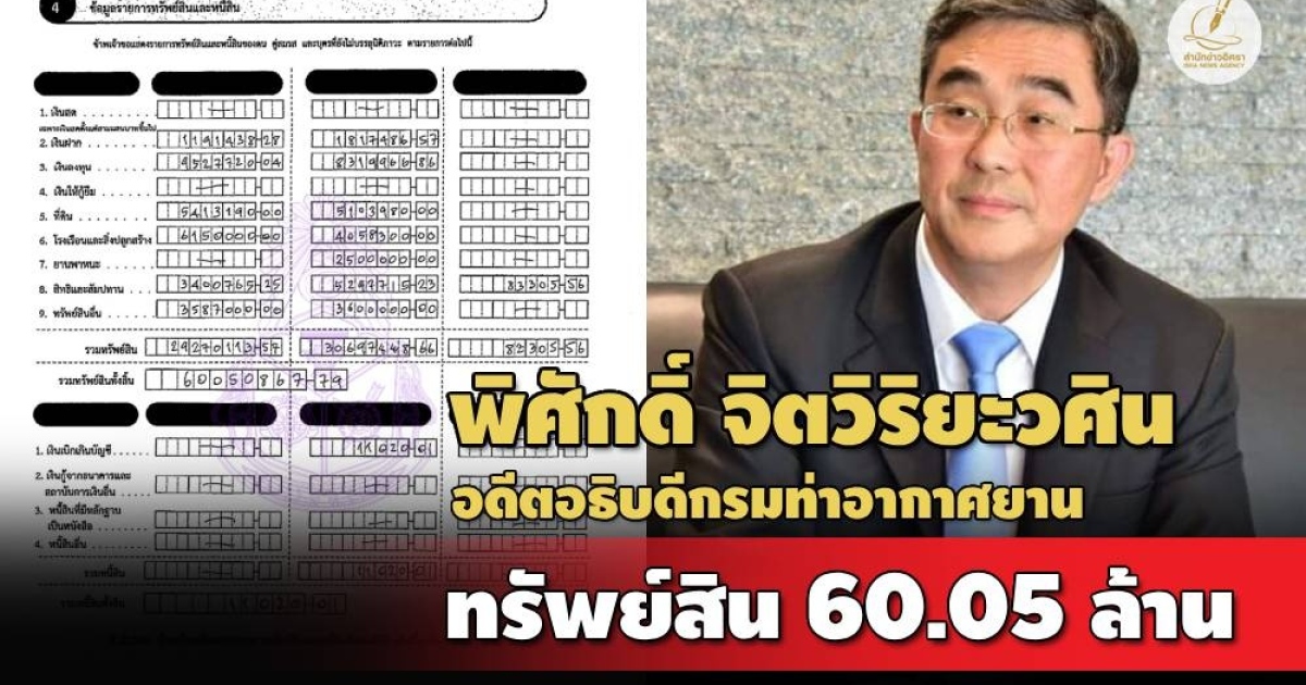 ป.ป.ช.เปิดทรัพย์สิน 'พิศักดิ์ จิตวิริยะวศิน' อดีตอธิบดีกรมท่าอากาศยาน มีทรัพย์สินกว่า 60 ล. บ้าน 3 หลัง สะสมทองคำแทง-เหรียญที่ระลึกทองคำ-นาฬิกา รายได้ 1.5 ล./ปี