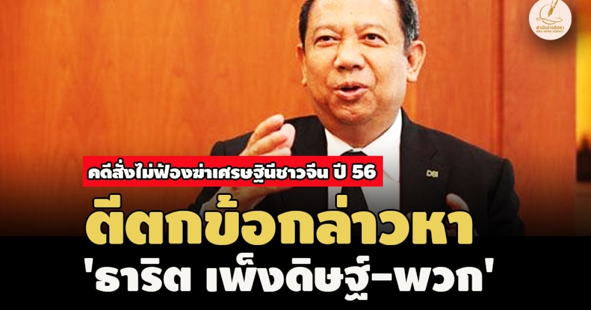 สำนักข่าวอิศรา (www.isranews.org) รายงานว่า เมื่อเร็ว ๆ นี้ สำนักงานคณะกรรมการป้องกันและปราบปรามการทุจริตแห่งชาติ (ป.ป.ช.) ได้เผยแพร่มติคณะกรรมการ ป.ป.ช. เมื่อวันที่ 23 ก.พ.2567 เสียงเอกฉันท์ตีตกข้อกล่าวหา นายธาริต เพ็งดิษฐ์ เมื่อครั้งดำรงตำแหน่งอธิบดีกรมสอบสวนคดีพิเศษ (ดีเอสไอ) กับพวก รวม 9 ราย ร่วมกันสอบสวนและมีความเห็นทางคดีโดยสั่งไม่ฟ้องผู้ต้องหาในความผิดอาญาฐานฆ่าเศรษฐินีชาวจีน ปี 2556 ซึ่งขัดแย้งกับพยานหลักฐาน อันเป็นการช่วยเหลือผู้ต้องหา เพื่อมิให้ต้องรับผิดหรือมิให้ต้องรับโทษ