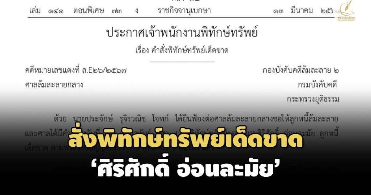แพร่ประกาศเจ้าพนักงาน คําสั่งพิทักษ์ทรัพย์เด็ดขาด ‘ศิริศักดิ์ อ่อนละมัย’ อดีต สส. 6 สมัย ถูกยื่นฟ้องศาลล้มละลาย
