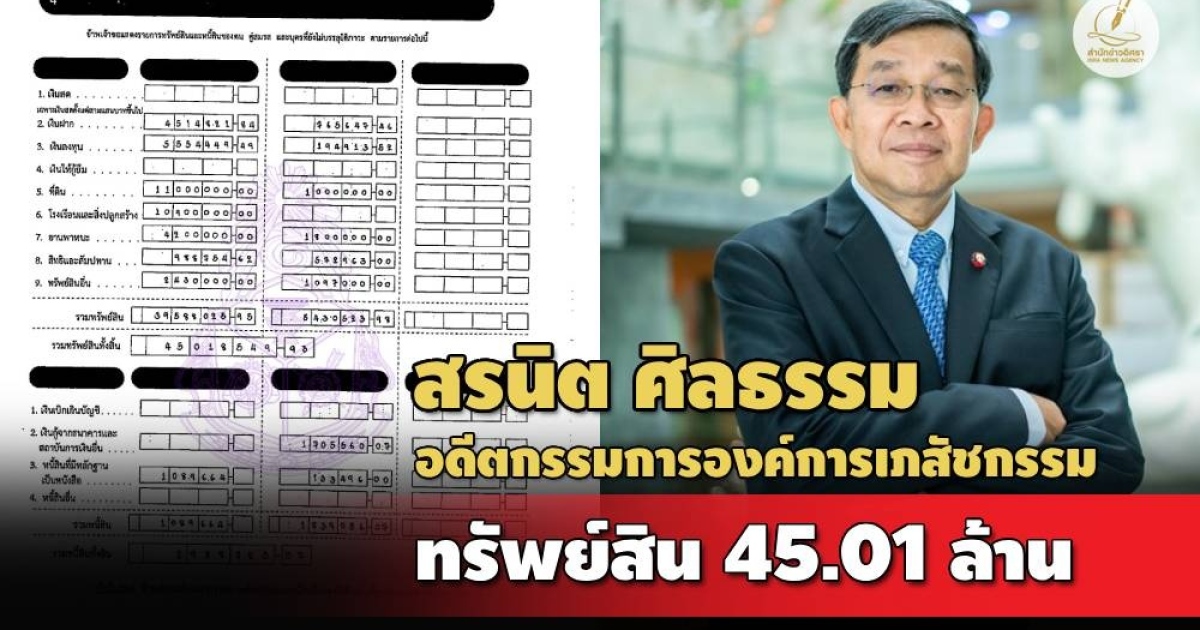 ป.ป.ช. เปิดทรัพย์สิน 'สรนิต ศิลธรรม' อดีตกรรมการองค์การเภสัชกรรม มีทรัพย์สินกว่า 45 ล. เงินฝาก 4.5 ล. ห้องชุด 3 ห้อง ตึกเดี๋ยว 1 หลัง สะสมนาฬิกา-แหวน รายได้ 7.1 ล./ปี