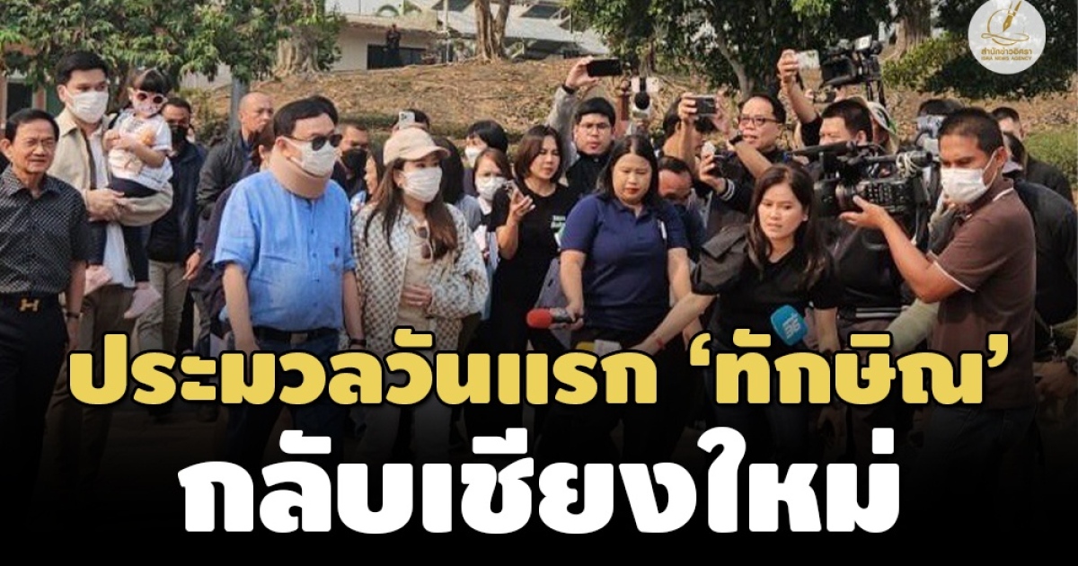 ‘ทักษิณ’ พร้อม ‘อุ๊งอิ๊ง-ลูกเขย’ ออนทัวร์เชียงใหม่วันแรก แวะสักการะศาลหลักเมือง กทม.เช้าตรู่ ก่อนเกินฟ้าเหยียบแผ่นดินเกิดเมื่อ 09.40 น. ก่อนตระเวณดูงานทั้งอุทยานราชพฤกษ์-การระบายน้ำ-ปล่อยปลา ด้าน ‘ธรรมนัส’ แจงมาพบเพราะตัวเองเป็น รมว.เกษตร ปรามสื่ออย่าคิดมากว่าเจอนายเก่า