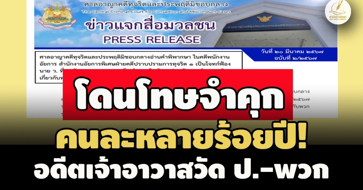 ศาลอาญาคดีทุจริตฯ พิพากษาลงโทษหนัก อดีตเจ้าอาวาส วัด ป. ทุจริตเบียดบังเงินบริจาค-ซุกซ่อนทรัพย์สินวัดกว่า 299 ล้าน เจ้าตัวโดนสั่งจำคุกหลายร้อยปี พร้อมพวก 3 ราย แต่ติดจริง 50 ไม่รอลงอาญา