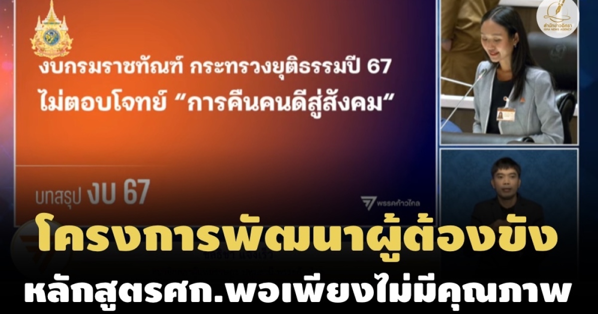 พรรคก้าวไกลอภิปรายงบประมาณ มาตรา 21 จวกรัฐบาลจัดสรรงบไม่เป็นไปตามที่ใช้งานจริง-โครงการพัฒนาผู้ต้องขังหลักสูตรเศรษฐกิจพอเพียงไม่สอดคล้องตลาดแรงงาน เสนอตัดงบกรมราชทัณฑ์ 5%