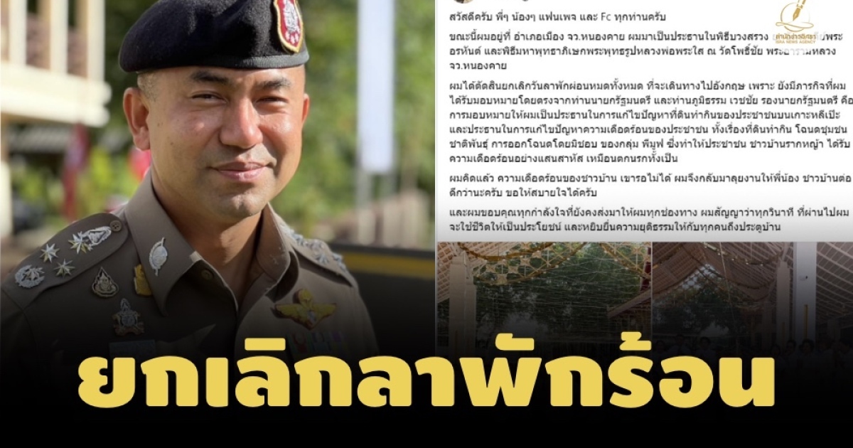'พล.ต.อ.สุรเชษฐ์ หักพาล' โพสต์เฟซบุ๊กยกเลิกลาพักร้อน เหตุนายกมอบหมายให้ไปแก้ปัญหาที่ดินเกาะหลีเป๊ะ