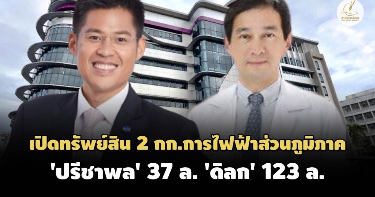 ป.ป.ช.เปิดทรัพย์สิน 2 กรรมการ กฟภ. 'ปรีชาพล' มีทรัพย์สิน 37 ล. ที่ดิน 6 แปลง เงินฝาก 14 ล. ส่วน 'ดิลก' มีทรัพย์สิน 123 ล. สะสมทองคำแท่ง-ทองคำรูปพรรณ-สร้อยคอทองคำ รายได้ 4 ล./ปี