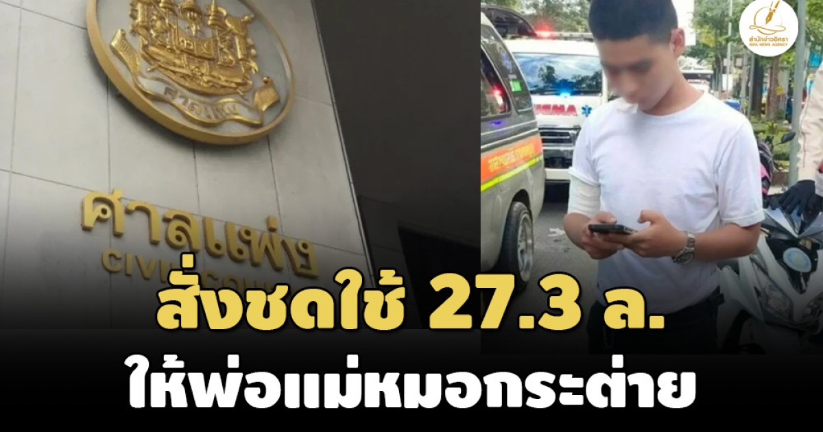 ศาลเเพ่งสั่ง ส.ต.ต.ขับบิ๊กไบค์ชนหมอกระต่ายเสียชีวิต ชดใช้ค่าเสียหายพ่อเเม่หมอ 27.3 ล้านบาท ยกฟ้องสำนักงานตำรวจเเห่งชาติ